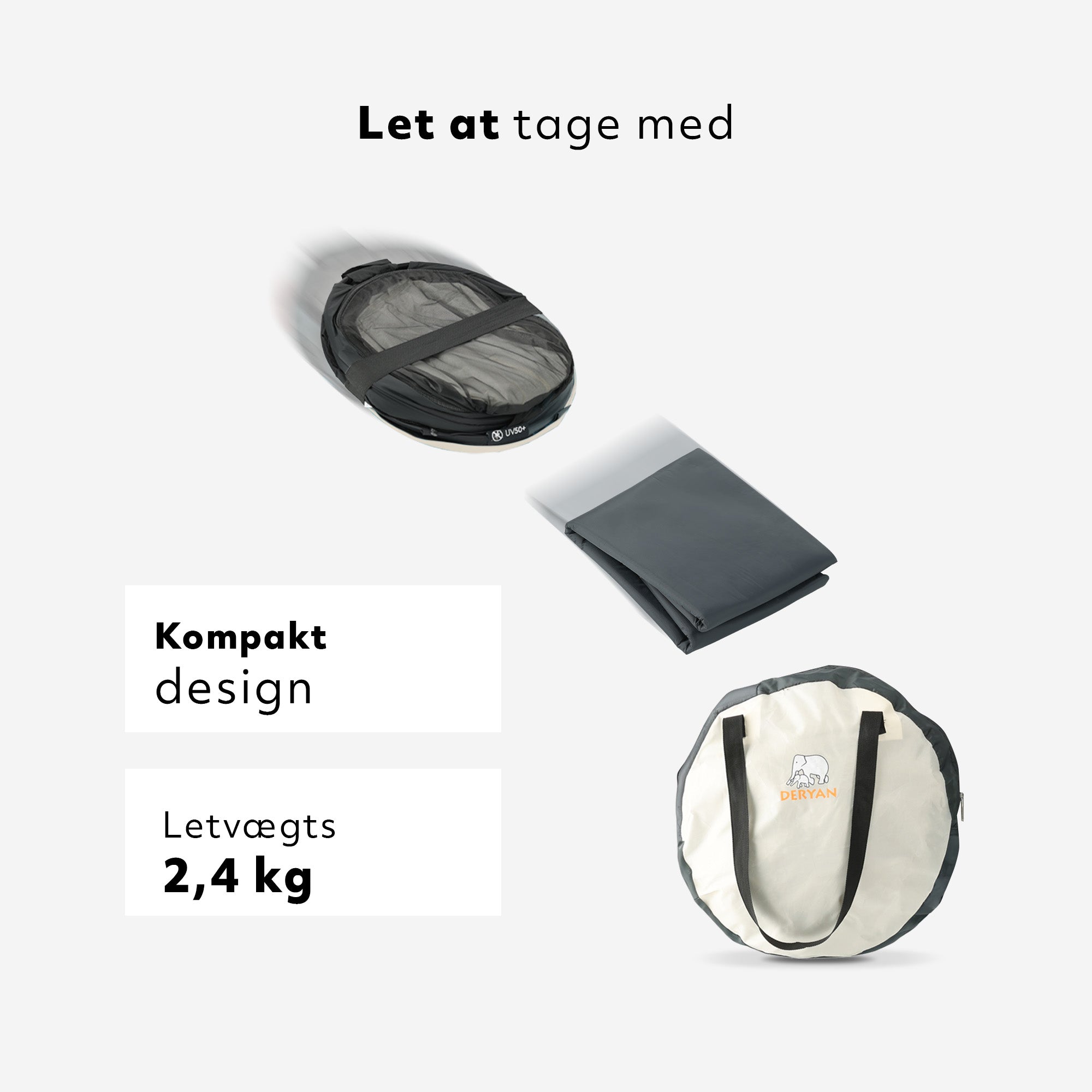 DERYAN Peuter Luxe er klar på 2 sekunder! Sammenfoldning er lige så let: På et øjeblik har du foldet Peuter Luxe sammen og pakket den væk igen.