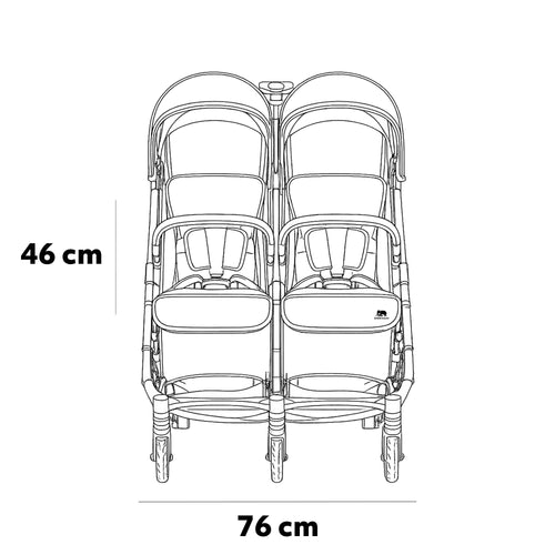 Vores duoklapvogn er designet til nemt og sikkert at transportere to små børn. Derfor har vi indbygget mange funktioner for at sikre, at du kan gå tur med fuld tillid.